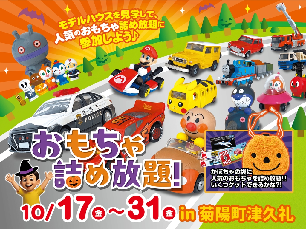 大人気のトミカやアンパンマンがいっぱい!シアーズホームの展示場を見学して、かぼちゃの袋におもちゃを詰め放題!いくつ取れるかな!?事前の来場予約でAmazonギフトカードの特典も!