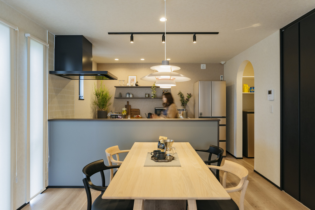 キッチン横の「パントリー」には、まとめ買いした調味料やレトルト食品、缶詰など、食料品はもちろん、災害時の備蓄も収納可能です。週末にまとめ買い派や、共働き夫婦の強い味方。キッチン横にパントリーがあるので、家事動線もスムーズです。