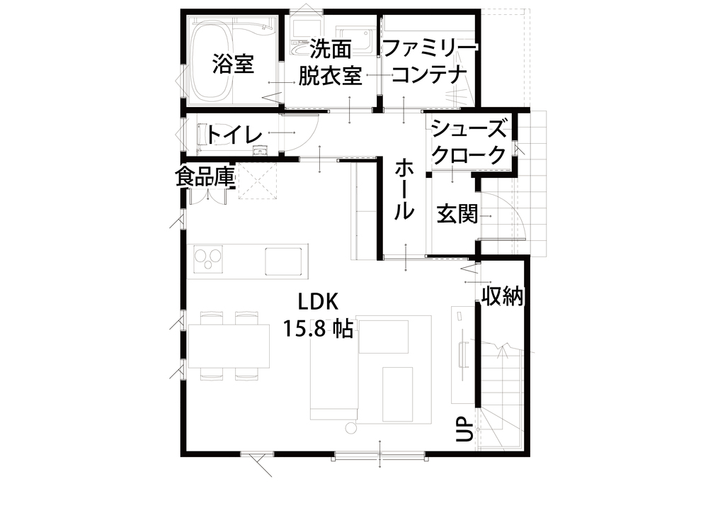 冬場のコート、帽子、バッグなど家族全員の衣類や荷物、日用品のストック等をまとめて収納できる大容量のファミリーコンテナ。 物の置き場所が決まることで、LDKでの服やカバンの一時置きが減り、スッキリ片付きます。