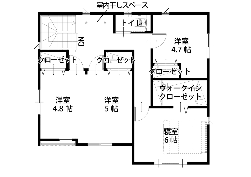2階の子ども部屋は将来的に2つに仕切ることも可能。
