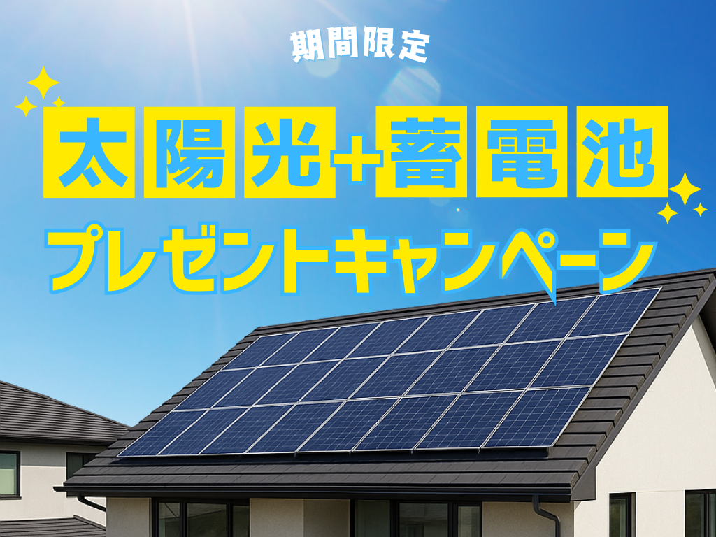 期間中のご成約特典として、太陽光発電システムと蓄電池のセットをプレゼント!