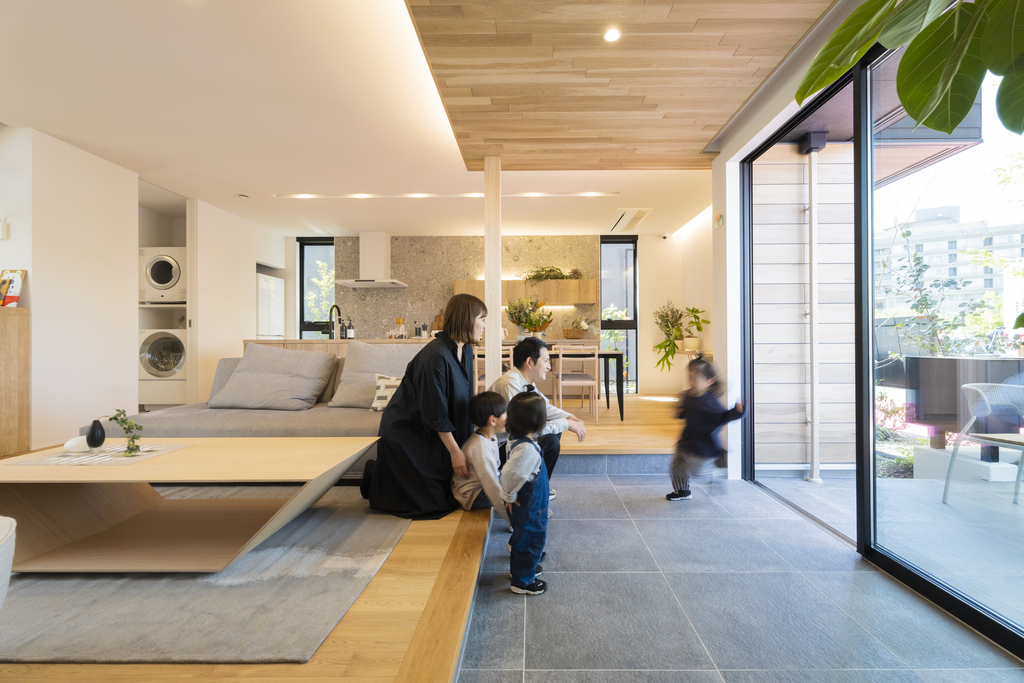 寝室・収納・水まわりを1階に集約。ライフスタイルの変化に柔軟に対応し、将来は「平屋」のように暮らせる住まいへ。