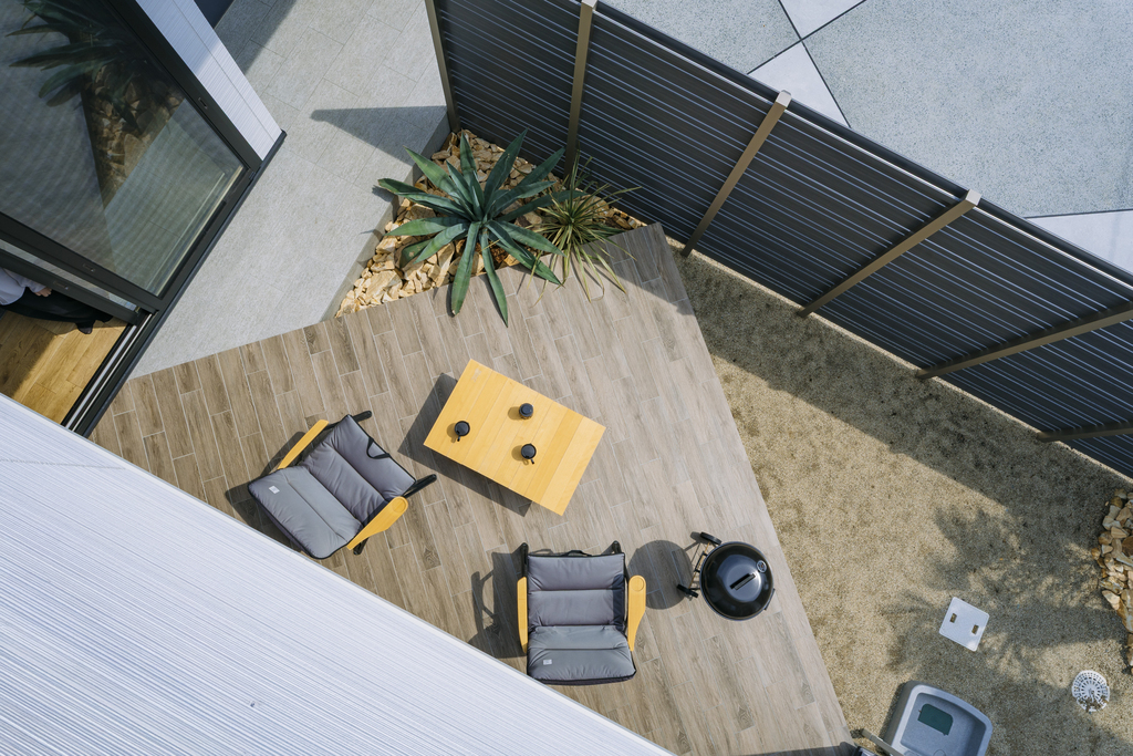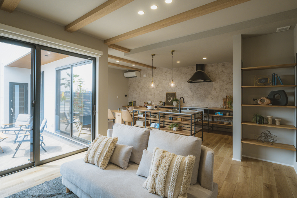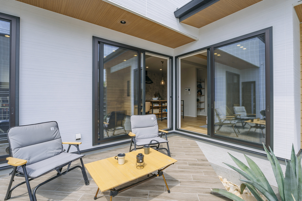 LDKとつながるテラスで、アウトドアリビングが楽しめる間取り。天気のいい日はモーニングコーヒーや、子どもとプール・BBQなど、アクティブな休日をおうちで!