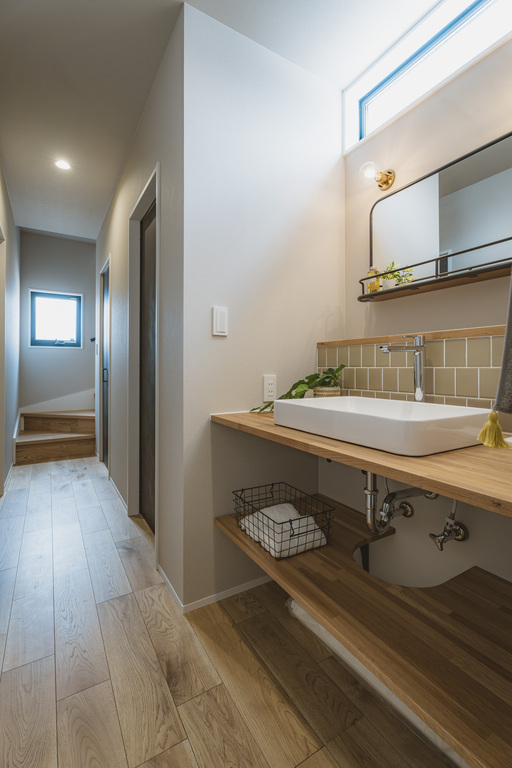 キッチンのすぐそばにパントリーや脱衣室を配置。料理をしながら洗濯、片付けをしながら身支度もスムーズに。家事の流れが自然につながるから、忙しい毎日にゆとりが生まれます。