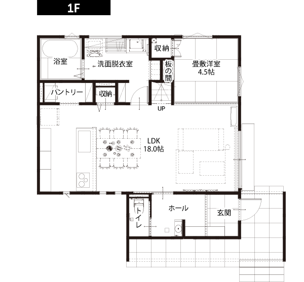 LDK横にある4畳半の和室は、来客時はもちろん、赤ちゃんのおむつ交換をするときや、寝返りやハイハイの練習などにも活躍します。また、洗濯物を畳んだり、アイロンをかけたりと一時的に作業するスペースなど、使い方は色々。