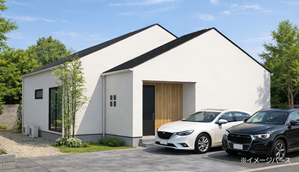 適材適所の収納でゆとりある毎日を叶える平屋モデルハウス。空間美を高める船底天井のLDKや、便利な帰宅動線もポイント。